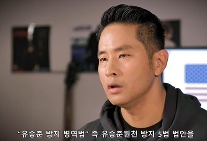 이른바 '유승준 방지 5법'에 유승준이 울분을 토했다. 그는 19일 자신의 유튜브 채널에 '유승준 원천 방지 5법 발의안? 김병주 의원 지금 장난하십니까? 그동안 참아왔던 한마디 이제 시작하겠습니다. #중대발언 #정치발언 #소신발언 #쓴소리'라는 제목의 약 40분 분량 영상을 게재했다.